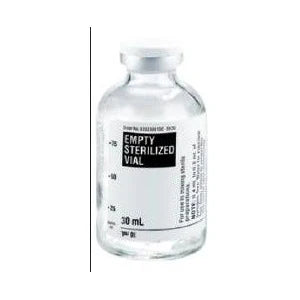 Sterile empty vials, 20mm, 5mL & 10mL and 16.5mm, 30mL clear glass, butyl stoppers with white flip-off cap.